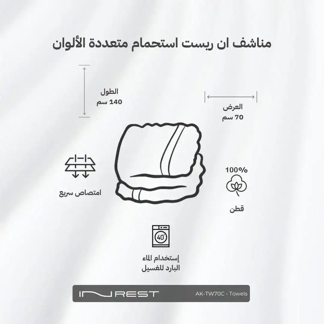 ان ريست مناشف استحمام قطن 100% قياس 70x140 سم - متعددة الألوان